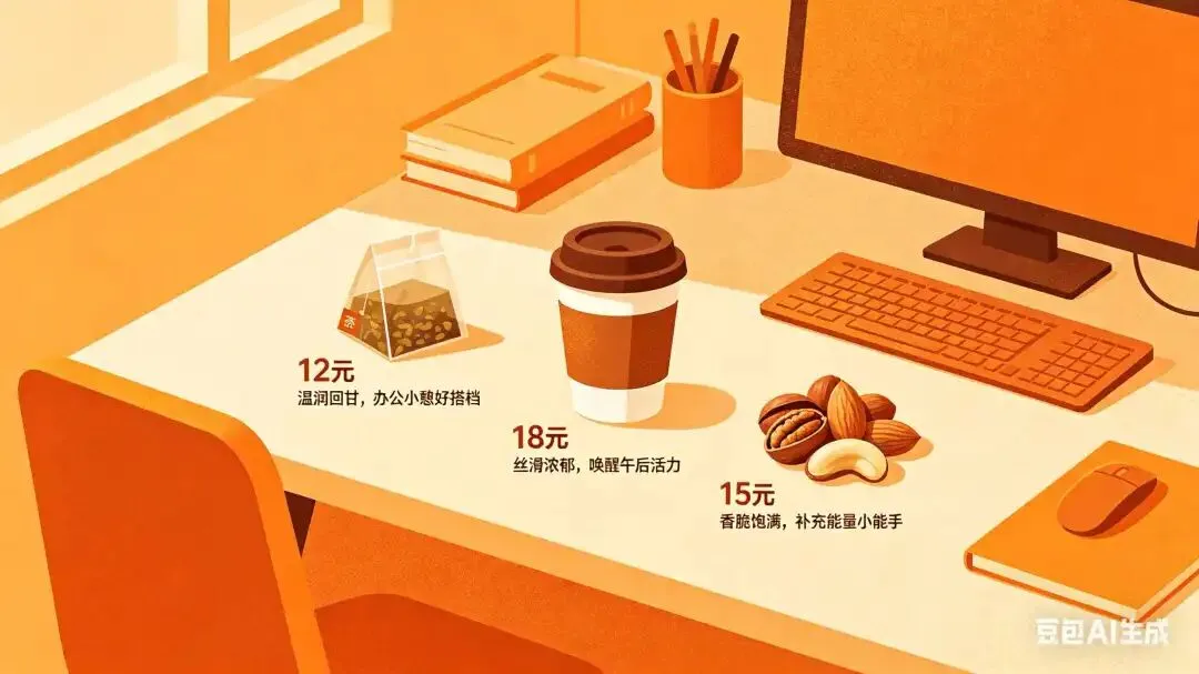 下午 3 点是疲劳高峰期,建议:- 起身活动 5 分钟(预防颈椎问题)- 喝一杯茶或咖啡(提神但不要太晚)- 吃少量坚果(补充能量)- 不要点奶茶(糖分过高,影响晚餐食欲)AI 推荐的下午茶好物: