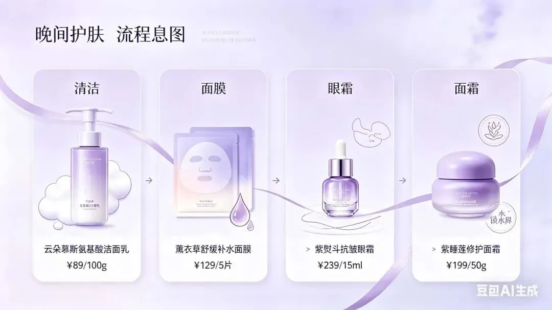 根据今天的天气和你的皮肤状态:- 清洁:氨基酸洗面奶(温和)- 护肤:补水面膜(今天空调房待了一天)- 特殊护理:眼霜(你最近说黑眼圈重)- 不要:刷酸、去角质(皮肤屏障需要保护)AI 推荐的护肤好物: