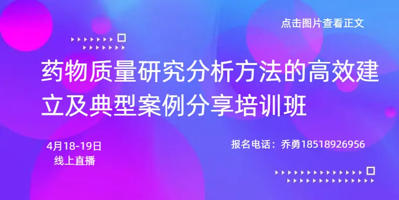 地点 时间 (点击↓链接阅读全文) 线上 4月18-19日 【线上】ADC药物从靶点发现到PCC全链条AI应用 线上 4月18-19日 【线上】药物质量研究分析方法的高效建立及典型案例分享培训班 线上 4月19日 【线上】小核酸药物非临床研究策略专题培训班 线上 4月24-25日 【线上】2026类器官技术用于新药研发培训班 线上 4月25-26日 【线上】药企生产设施设备预防性维护和高效维修 线上 4月25-26日 【线上】细胞治疗产品IIT从备案、临床研究到转化应用全链条及818号条例细则深度解析 线上 4月25-26日 【线上】AI与药品注册深度融合及全流程落地实施专题培训 线上 4月28-29日 【线上】冻干制品从实验室开发到商业化生产的全生命周期质量控制解决方案和实施 南京 5月22-24日 【南京】医药化工企业智能工厂梯度培育政策解析及智能工厂建设研修班 百名专家现场合规咨询辅导服务 微信识别下图二维码可在线咨询