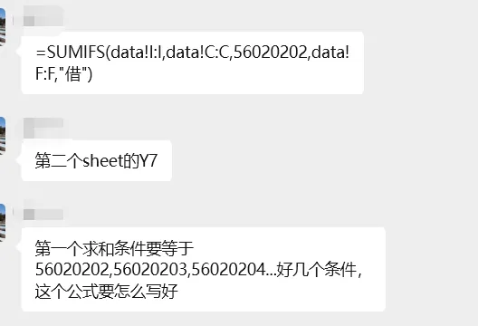 =SUMIFS(data!I:I,data!C:C,56020202,data!F:F,"借")+SUMIFS(data!I:I,data!C:C,56020203,data!F:F,"借")+SUMIFS(data!I:I,data!C:C,56020204,data!F:F,"借")