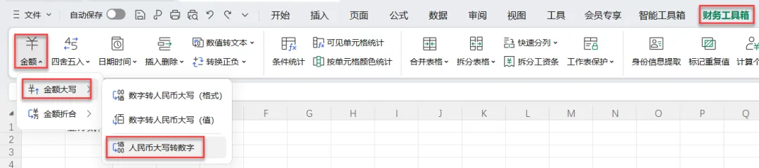 WPS表格特有功能,财务工具箱,金额,金额大写,人民币大写转数字。
