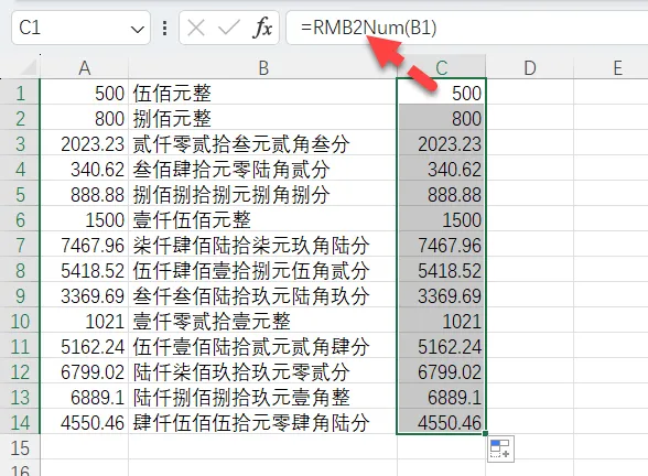 反过来,如果是小写转大写,可以参考文章:每个会计都会用到的人民币表示方法,超全超好用!