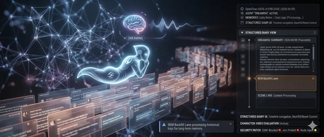 OpenClaw v2026.4.9(2026 年 4 月 9 日发布)最大的亮点无疑是 梦境系统(Dreaming) 的落地: