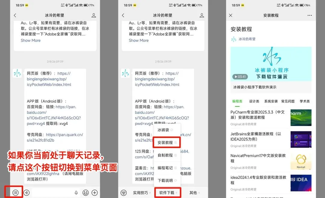 为了方便大家查找安装教程,冰冰会整理分类一些教程放在公众号菜单栏