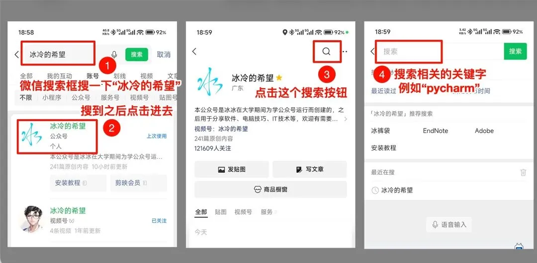 1.在微信首页上面的搜索框搜索“冰冷的希望”;