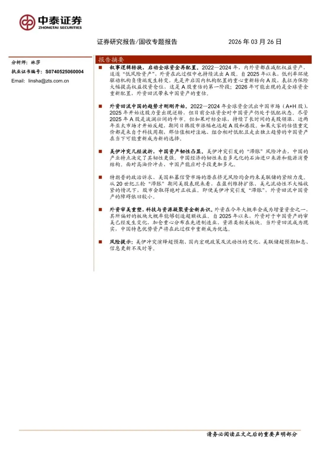 回复暗号:当外资重新回流:接力负债驱动-260326-中泰证券-15页