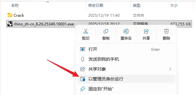 3.鼠标右击【rhino_zh-cn_8.26.25349.19001】选择【以管理员身份运行】。
