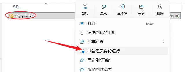 9.右键以管理员身份运行Keygen程序。