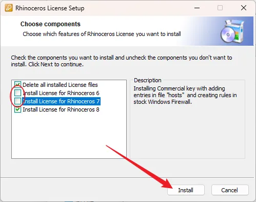 10.仅保留勾选【Delete all…】和【Install…8】,点击Install。