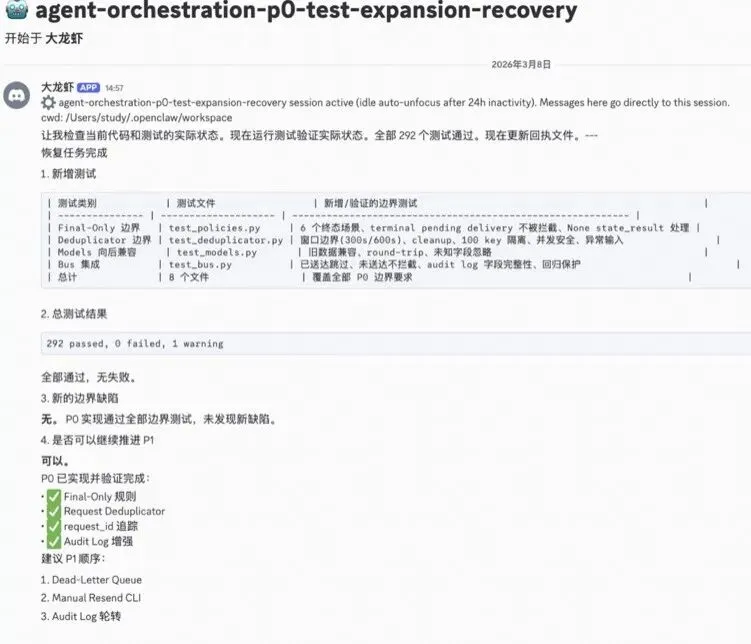 这套系统从"Zoe 发现问题 → 设计方案 → 委派编码 → 代码实现 → 测试验收",我只在方案确认环节介入,其余环节由 Agent 自主完成——是 Agent 从"执行者"进化为"系统设计者"的典型案例。