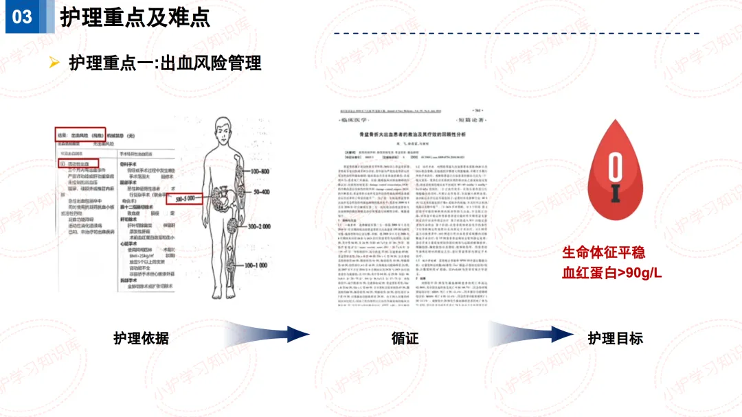 我们的护理依据是,必须严密监测生命体征和血红蛋白水平。