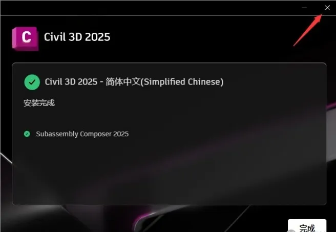 9.安装完成,点击右上角X关闭(若有提示重启,点击稍后)。