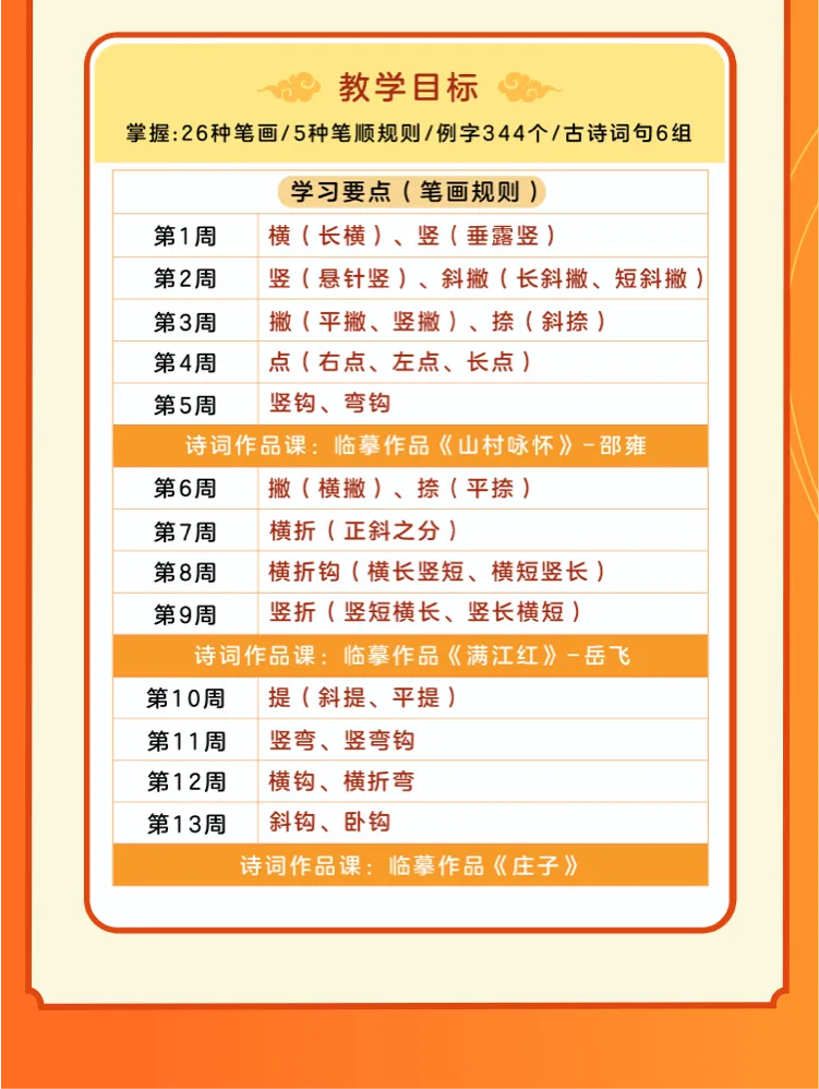 【课程时长】写字课共80节,每周解锁的第一节课时长20分钟左右,后续4节每节8-10分钟