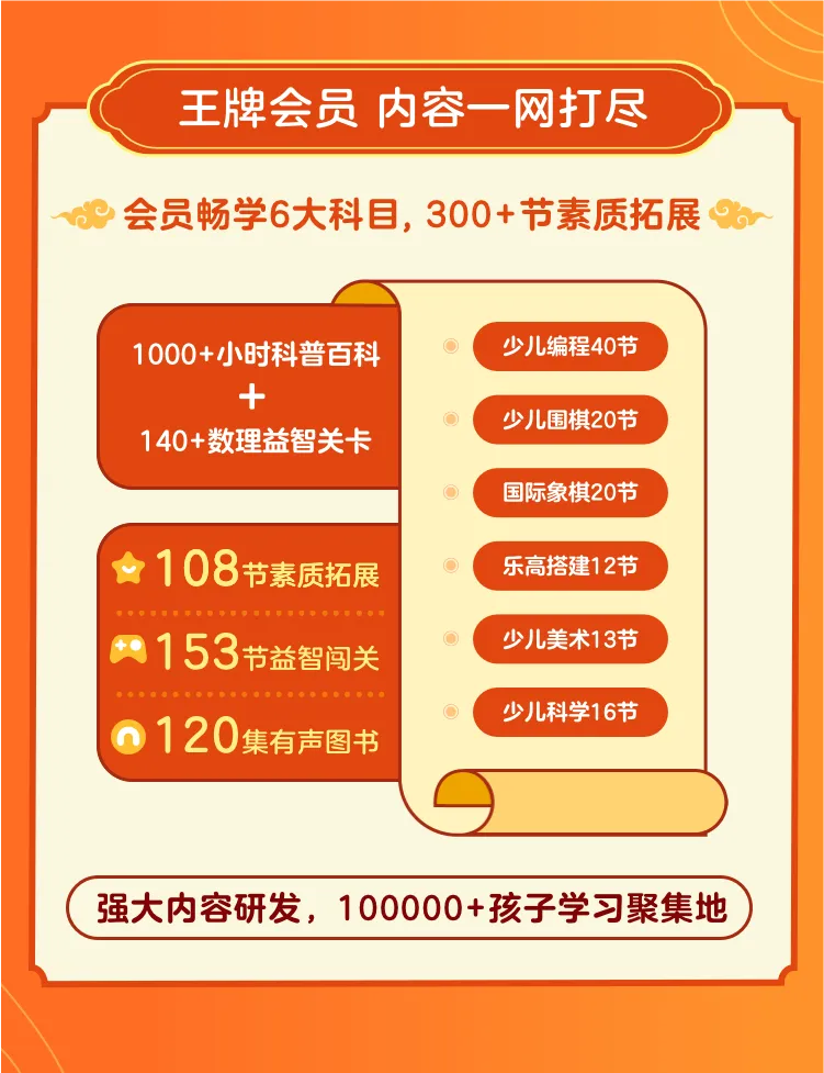 赠课-30天有道王牌素质课会员:会员期限内可免费学习,包含编程,围棋,国际象棋,美术,科学,乐高等部分课程