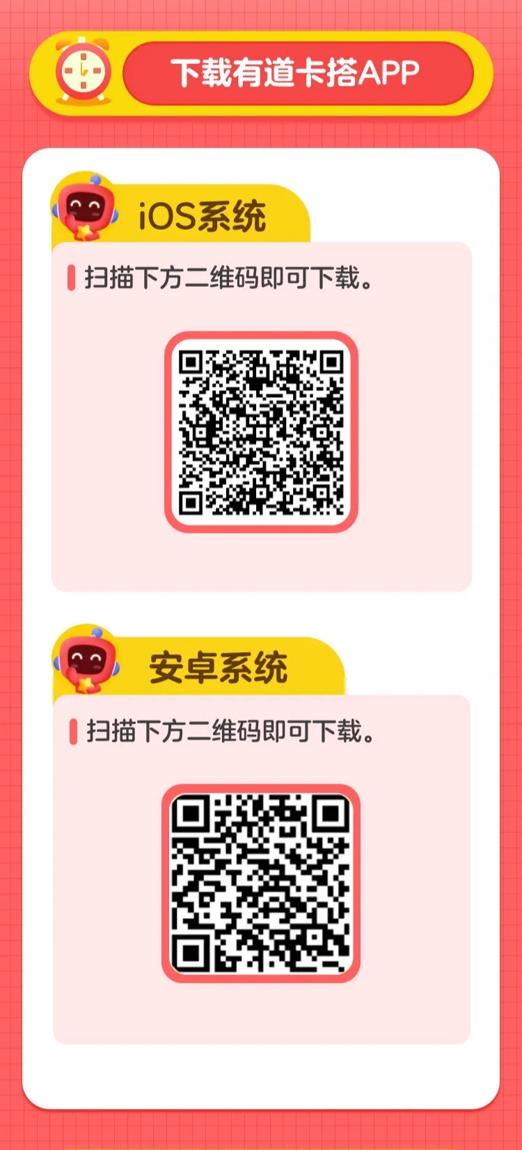 安卓学习机下载最新版【有道卡搭】APP的方法:https://doc.weixin.qq.com/doc/w3_AWwAYga3AGY4KmClcbyT3C4yO1rw6?scode=AGoAOwfpAA4Fl6yk74AWwAYga3AGY