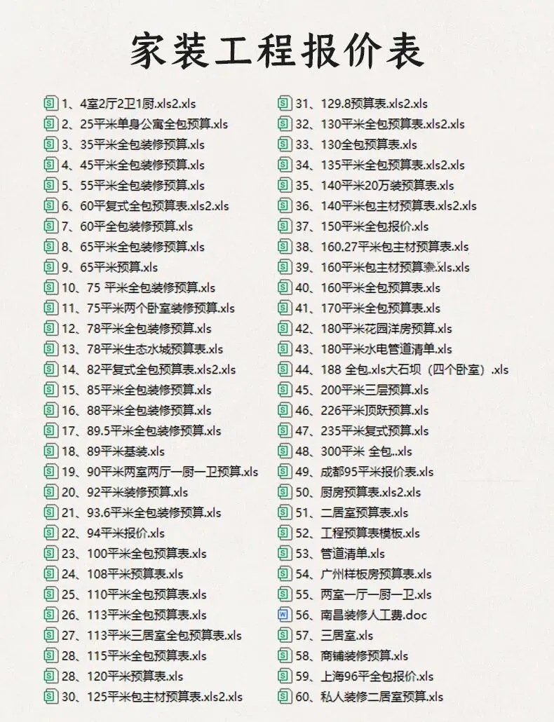1、家装预算模板79套