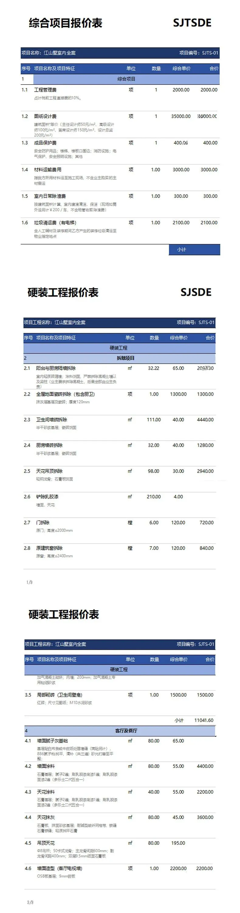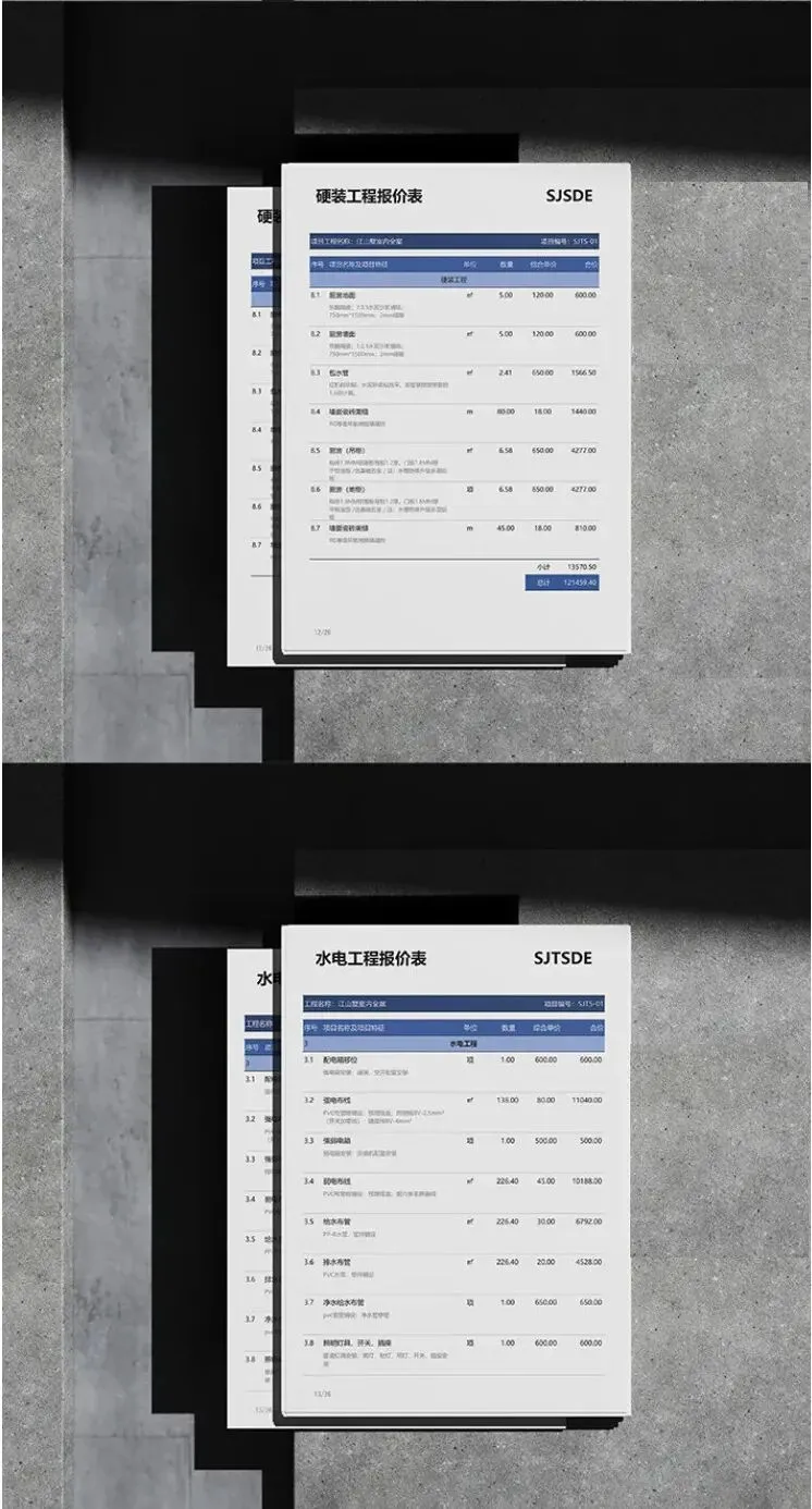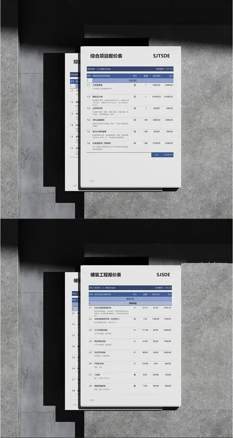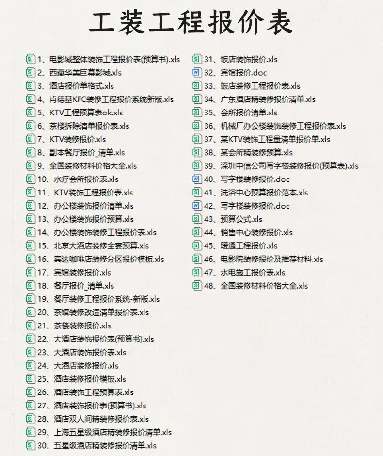 2. 各类工装空间预算报价模板52套