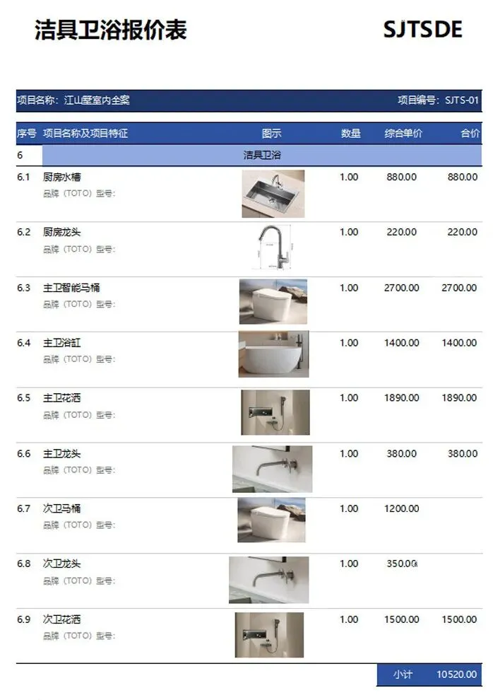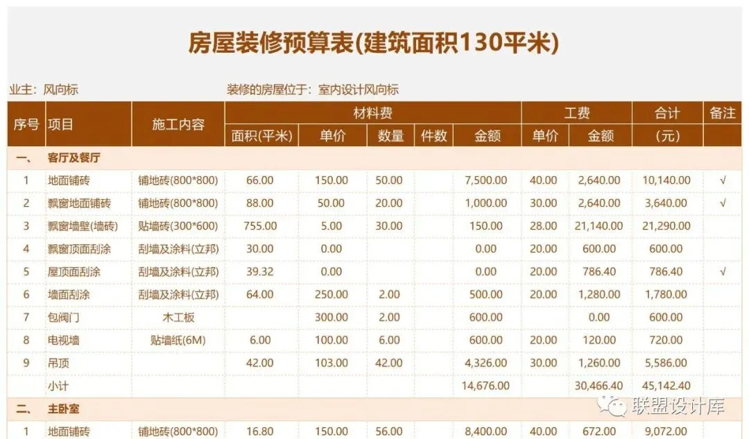 室内设计师专用的EXCEL报价清单