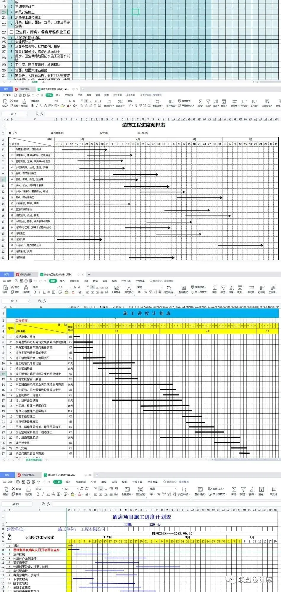 施工图进度表、计划表、装修合同等等