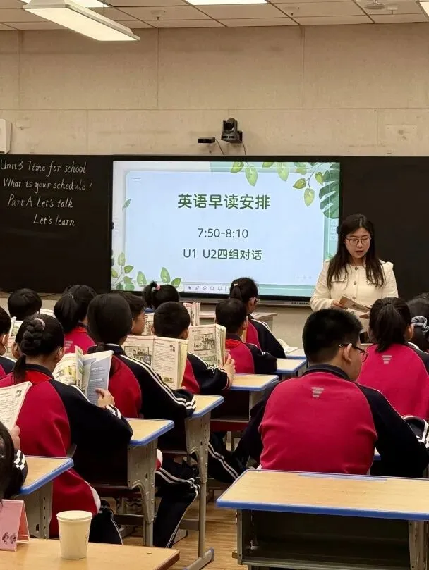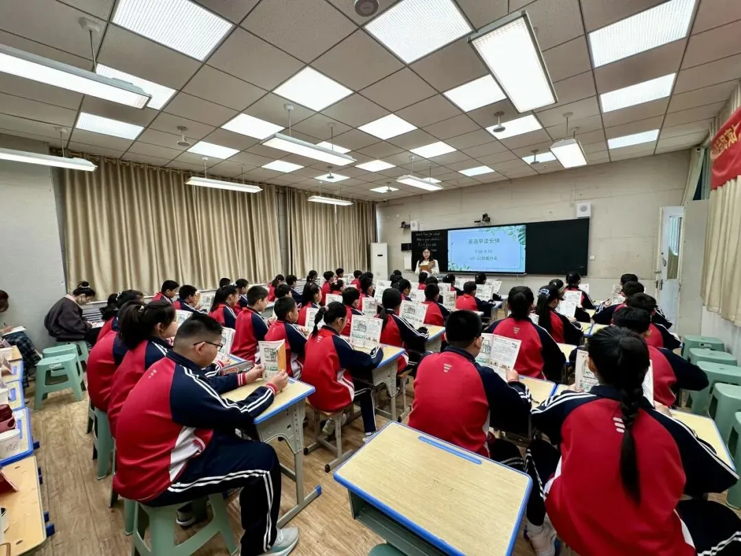 与会老师们首先走进潘琪老师所在班级的英语早读课堂。早读设计了“个人自主朗读”“小组合作背诵”“情境角色扮演”三个阶梯式环节。这种设计兼顾了学生的自主练习与同伴互动,既巩固了已学内容,也为新课学习做了有效铺垫。早读环节扎实、有序,体现了日常教学中对学生习惯的持续培养。