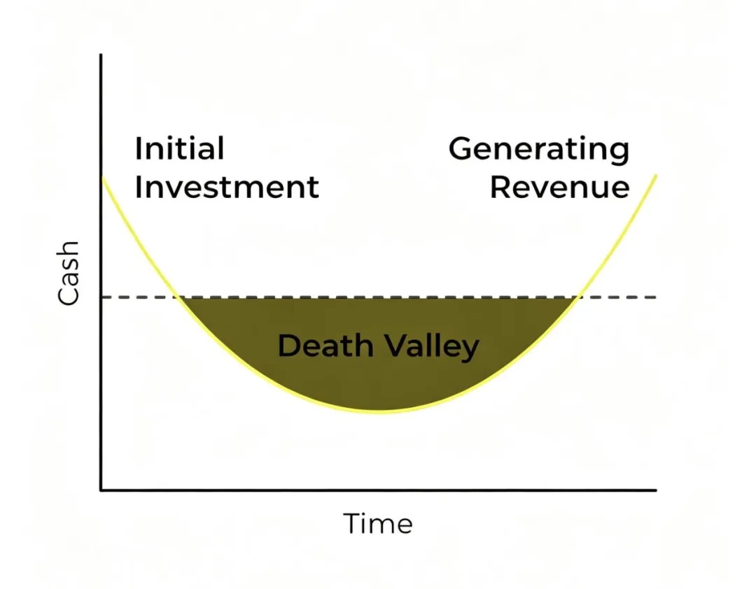 传统IDE的短板在于:0-1阶段太长了。一个想法从脑子到产品,要经历漫长的研发周期。创始人要花几个月甚至几年,砸大量资源,才能做出一个能用的东西。这段时间里,企业基本没收入,全靠风险投资、天使、政府资助,还有创始人自己搭进去的“汗水股权”(sweat equity)撑着,一着不慎就会踏入死亡之谷无法翻身。