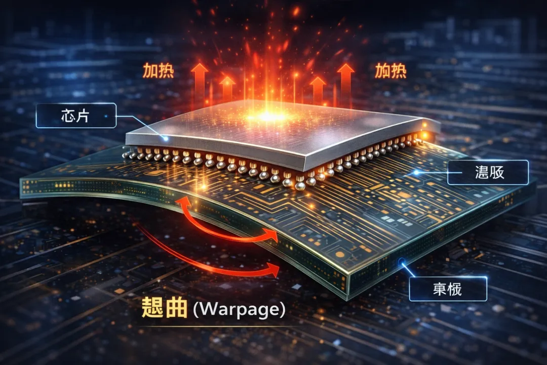 但问题也越来越明显,当AI芯片规模越来越大时:有机材料开始撑不住了。核心问题只有一个:热膨胀系数(CTE)不匹配。硅芯片的CTE大约是:3 ppm / °C,而有机材料:15 ppm / °C以上。一旦封装翘曲:电路连接失效,信号完整性下降,芯片良率暴跌。几十亿美元研发的芯片可能直接报废。