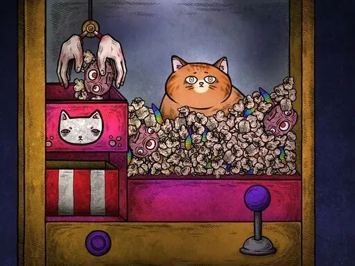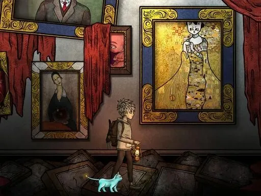 《猫博物馆》的故事,始于一座坐落在荒野中的诡异博物馆。传闻这里曾陈列着无数与猫咪相关的奇异展品,却不知为何突然废弃,唯有一只神秘的蓝眼猫咪,日夜看守着这座被遗忘的建筑。玩家意外成为新任管理员,接下修复博物馆、解开尘封谜团的任务。随着探索深入,你会发现这座博物馆远非表面那般简单。这里没有时间、不分昼夜,砖瓦散落、氛围压抑,每一个展馆都藏着扭曲的画作、怪异的机关与破碎的记忆。而那只看似温顺的猫咪,时而温柔引导,时而调皮捣乱,成为你在诡谲世界里唯一的陪伴。你需要在猫咪的帮助下破解层层谜题,拼凑记忆碎片,最终揭开博物馆荒废的真相 —— 一段关于童年创伤、人性善恶与自我救赎的黑暗往事。游戏延续《人生画廊》的手绘风格,却增添了更多暖色调与猫咪元素。粗糙的油彩线条、暗沉却柔和的色彩、扭曲却可爱的猫咪形象,构建出独特的 “暗黑童话风”。没有血腥恐怖的画面,却用氛围与隐喻,营造出令人头皮发麻又欲罢不能的沉浸感。