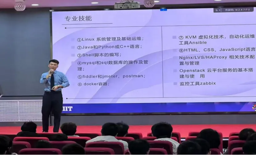 在职业岗位解析环节,李阳老师重点介绍了软件工程相关岗位的发展情况,包括Python开发工程师、Java开发工程师、前端开发工程师以及软件测试工程师、实施工程师和数据分析师等,详细讲解了各类岗位所需技能及行业发展前景,帮助学生建立清晰的职业认知,为制定个人规划提供参考依据。