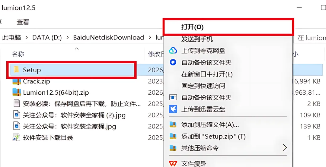 2.打开解压后的文件夹,双击打开【Setup】文件夹。