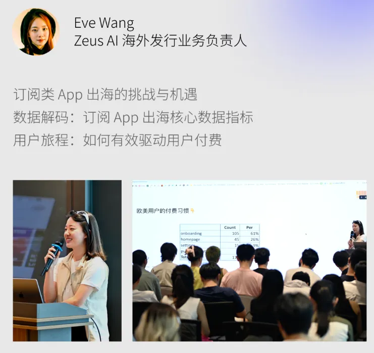 Eve:好,感谢邀请。我可以先讲一下为什么做这个事情,是因为我过往的经历。我毕业之后先在宝洁做管培,然后在宝洁出来之后我就去了 Google。当时比较阴差阳错,我在 Google 做的事情是Google 的 NON Gaming——因为 Google 的 APP 出海的 ADS 板块会分成Gaming 跟 NON Gaming,然后我恰好是在 NON Gaming 的这个 sector 里面。我当时会面向中国的非常多的团队、开发者,我会告诉他们你在 Google 的体系里面怎么去 run,怎么把你的产品做到海外去。然后在那个阶段我就发现——我其实看到中国有很多这个工厂型的团队,他们其实有非常成熟的体系、非常成熟的打法,然后也在海外做出了一些很赚钱的产品。但是从另外一面,我也在市场上看到了一些我自己觉得产品做得很好,但是他们其实可能因为比如说商业化的限制、可能因为增长的限制、资金的限制、资源的限制等等,以至于他们就是拿着一个很好的产品,但一直就是没有实现一个非常好的增长。所以在那个时候开始我就开始关注,我发现在全世界的维度其实有一些像比如说Bending Spoon,Bending Spoon 是通过收购公司,就是收购一些非 OC 的 APP,然后他们最近也收了很多,就是拿十几亿美金去收购一些更大型的团队,然后他是通过收购,然后 Acquire,然后再放大,就优化放大。然后也有在欧洲也有一些做 NON Gaming sector 的 APP 发行的公司。我觉得很有意思,然后我在想说how come 在中国的市场上没有这样的一个团队在做这个事情?所以当时我跟我的几个——我觉得大家的信任基础比较好的客户,我们一起在聊,然后其中有一个是我当时最头部的社交客户的 CMO,他也是我认识的、我觉得在增长板块最有能力的人。所以我们一起从2023 年底我从谷歌出来,然后我们一起做我们现在的公司。我自己认为这是中国真正意义上第一家帮助非游戏的产品去 go global 的一个平台。然后我们过去两年的时候也做出了一些算是成绩,然后我们也有很多自己的 learning。