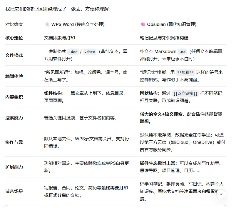 Obsidian 初次下载 及 初始配置首先身份+目标对deepseek进行提问,专业性较强的内容还是交给dp,豆包更擅长生活娱乐的方面。deep seek会把搜索的链接也给你,可以直接溯源,不用害怕数据污染。因为之前我给豆包发问题,他回答的理直气壮,后来给我发现他在自己瞎编的骗我,所以能溯源对我来说才会更安心。先进入官方网站下载https://obsidian.md/download,刚开始进入几次都不行,后来还是开启了科学上网,下的就是嗖嗖的。剩下的操作其实就和在word、wps中的操作类似了。新建文件夹、添加文件。那ob与他们的区别又是什么呢?至此,Ob的安装基本就完成了,下一步就是调试copilot的设置了,等我再研究研究。
