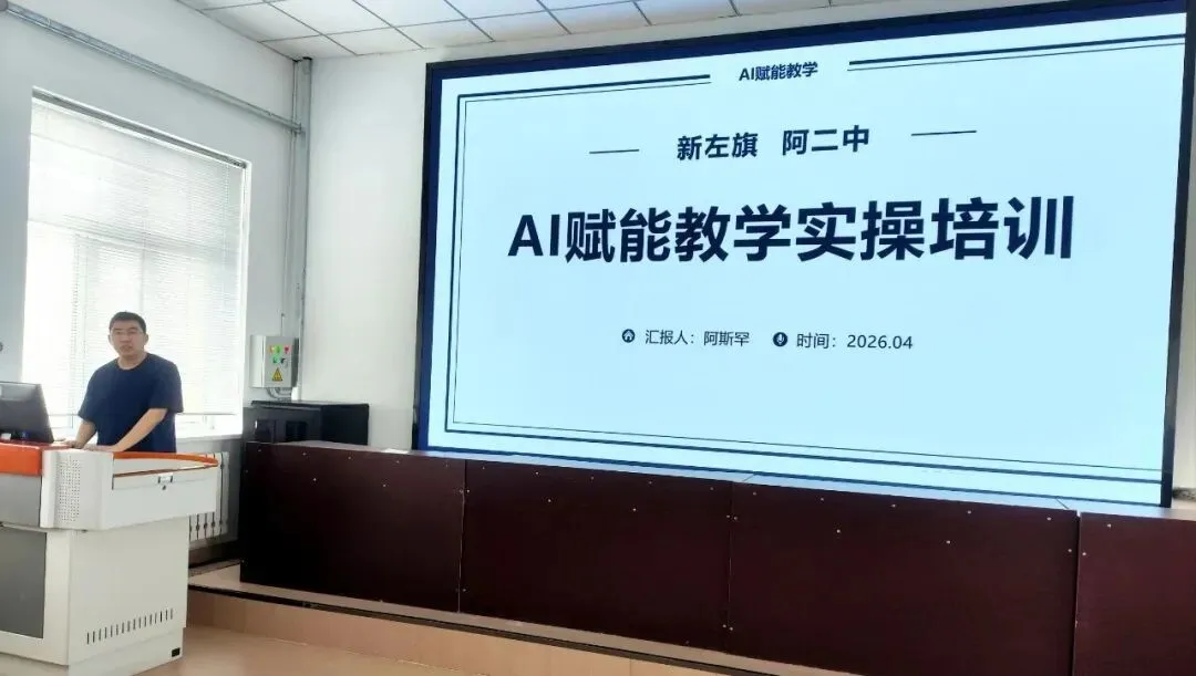 为紧跟教育数字化发展浪潮,推动人工智能技术与教育教学深度融合,提升教师信息化教学能力与创新实践水平,新左旗阿中于2026年4月成功举办AI赋能教学实操培训。全校教师齐聚一堂,在阿老师的专业讲解与实操演示中,解锁AI教学新技能,开启智慧教学新征程。