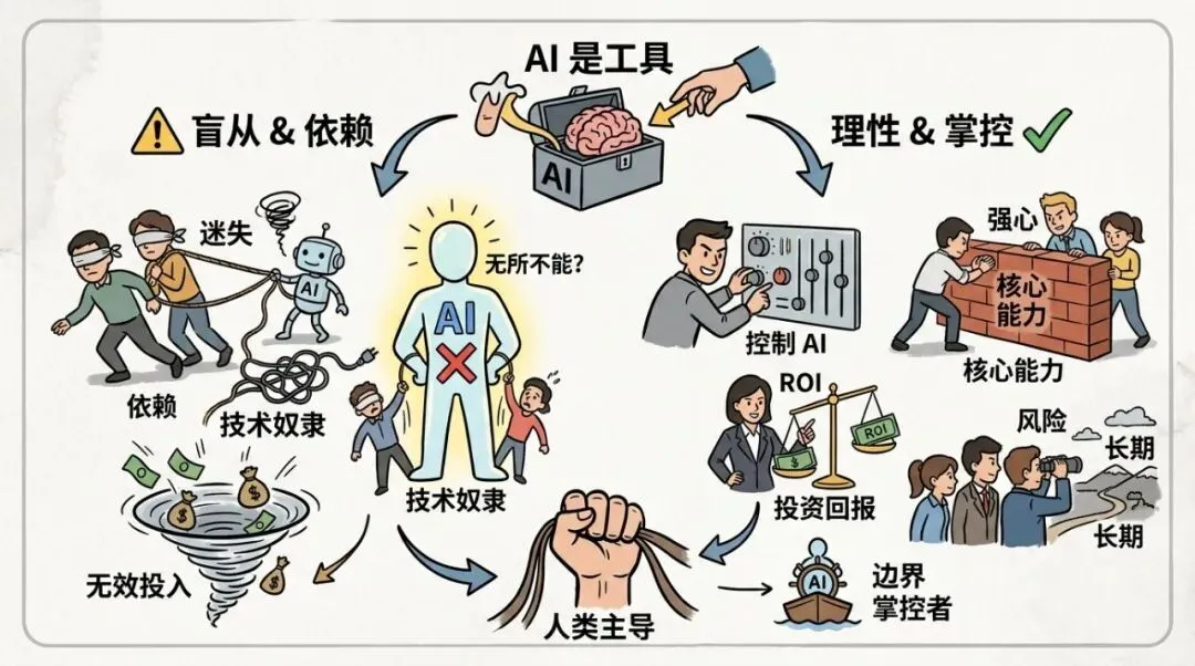 说到底,AI 就是个工具而已,是我们用它,不是它绑着我们,我们才是掌控者,不是被它牵着鼻子走的傀儡。