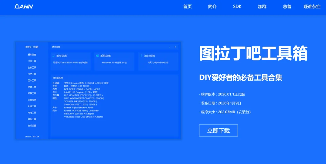 图吧工具箱是一款特别强大的工具箱软件首先可以检测电脑的硬件信息,CPU 系主板显卡等等,还可以当做烤机工具我们使用它一般就是刚买的电脑,使用U盘启动,跳过Win 激活,然后检测电脑是不是翻新的它可以替代X大师,只需要一个工具就可以替代好多工具关键它绿色免费,而且还开源,可以说是最清爽的硬件检测工具了只有 Windows 版本