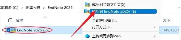 1.右击下载的【EndNote2025】压缩包,选择解压到【EndNote 2025】。(安装前先解压,没有解压软件的先安装一个再操作。)