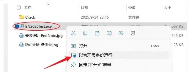 3.右击【EN2025Inst.exe】选择【以管理员身份运行】。
