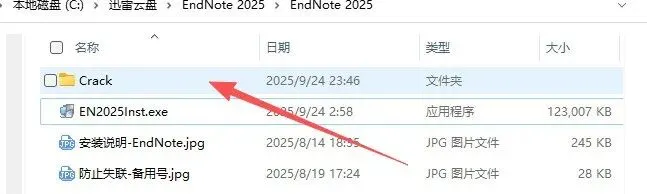 14.打开安装包解压后的【EndNote 2025】文件夹,双击打开【Crack】文件夹。