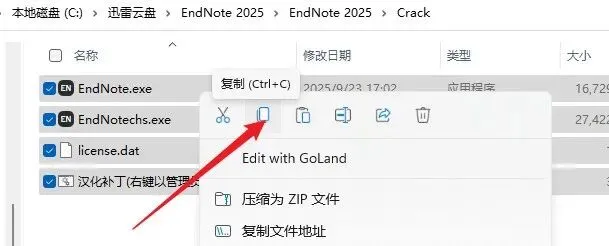 16.依次打开软件安装路径:D:\Program Files (x86)\EndNote 2025(看第8步设置路径),在打开的文件夹空白处,鼠标右键“粘贴”刚才复制的文件。