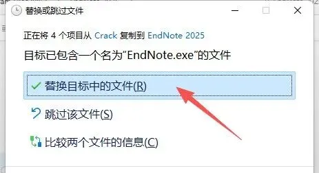 17.点击“替换目标中的文件“(若提示需要管理员权限,勾选“为所有...”,点击“继续”)。