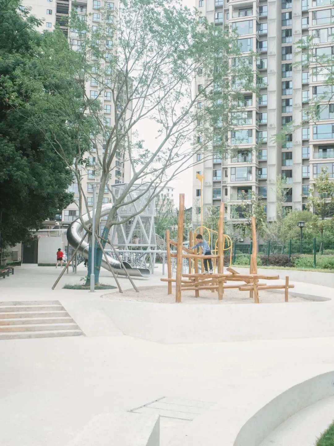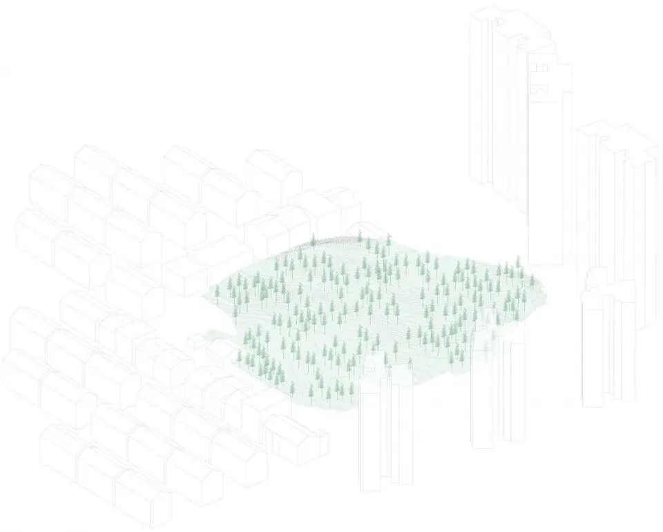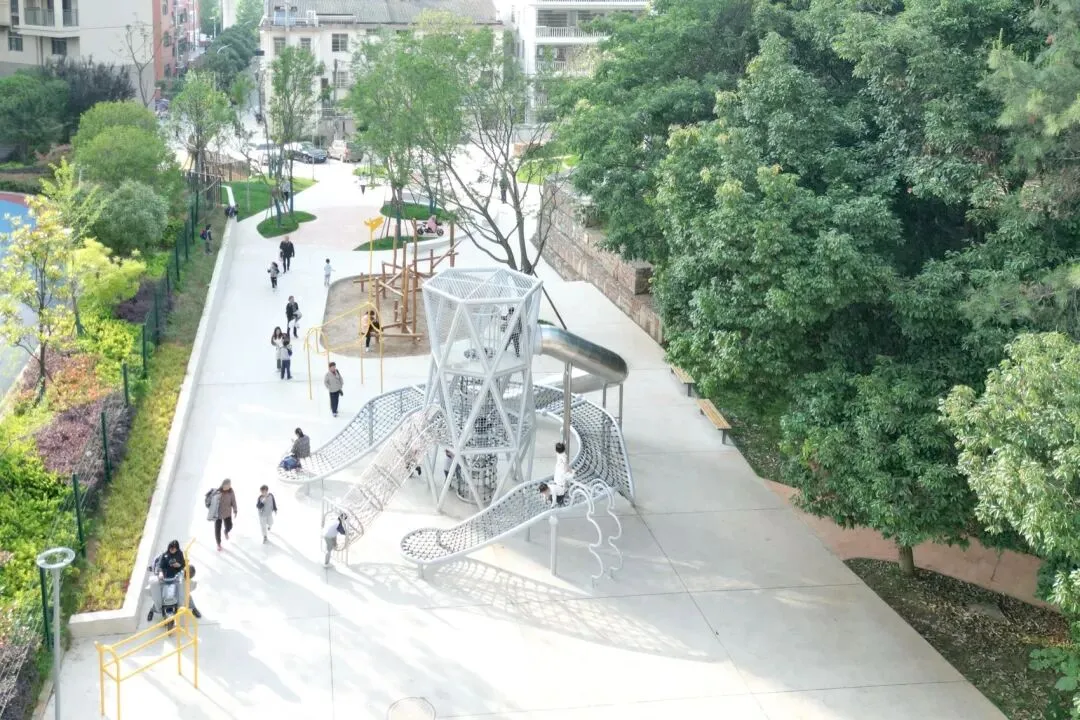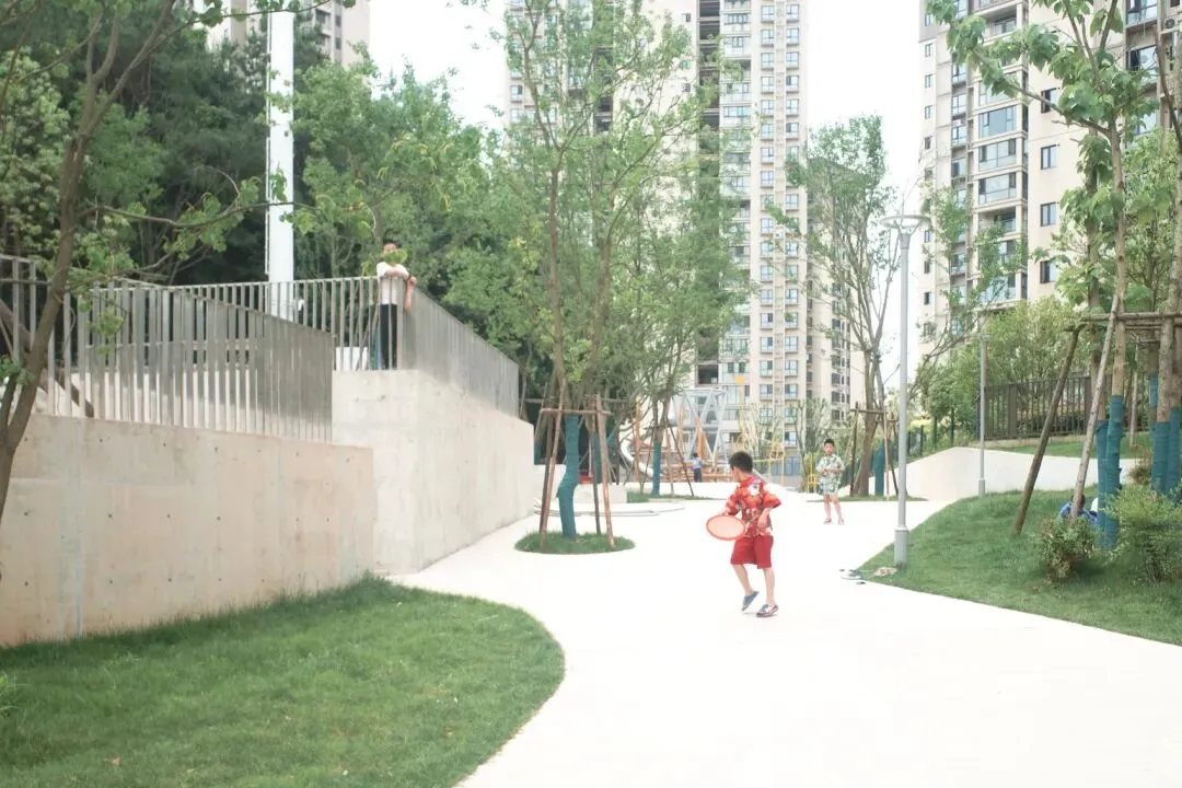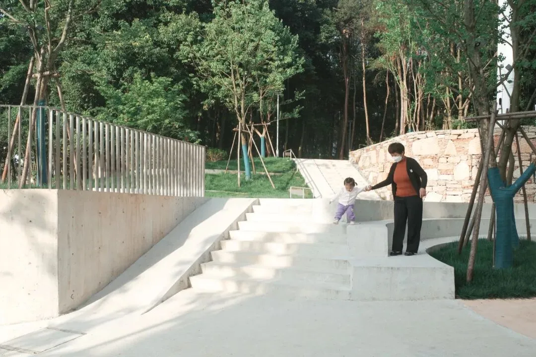 这片小松林为人们提供了相互交流的机会。项目尽量利用现有资源,保留几乎全部松树,并借助原有地形高差,为周围居民呈现一个兼具可持续精神与探索趣味的公园。建成后,公园深受周边村民、高层小区居民和学生们的喜爱,放学时节尤为热闹。这一新空间不仅在物理上连接了两个社区,也促进了村民与住宅区居民之间的良好互动。它提供了一个有趣、包容且开放的公共自然场所,让所有使用者都能感受到更强的可及性与归属感。
