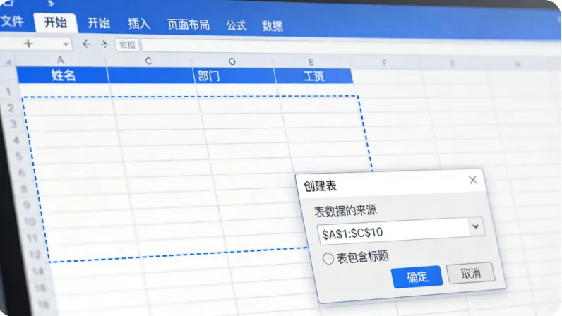选中数据区域的任意单元格 按下快捷键 Ctrl+T 确认「表包含标题」后点击确定