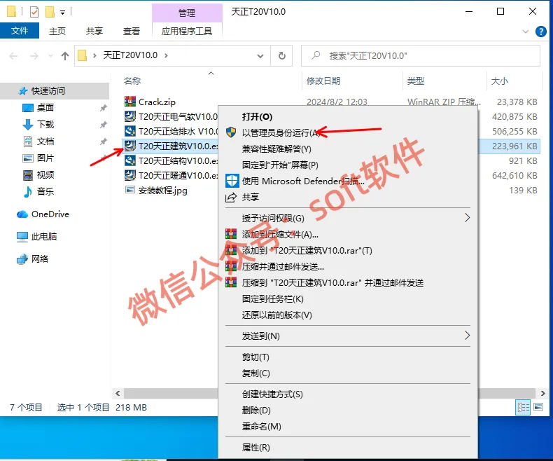 2,进入解压生成的文件夹里面,右键以管理员身份运行需要的安装程序,本教程以建筑为例,运行T20天正建筑安装程序