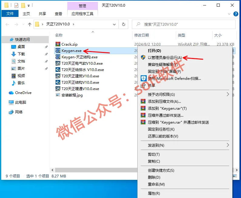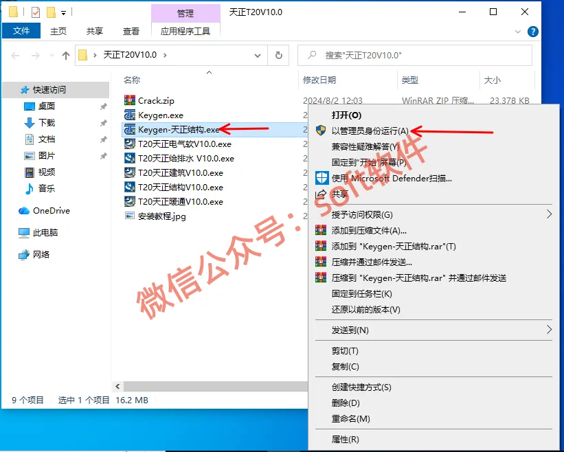 10,鼠标右键Keygen程序,选择以管理员身份运行(若解压后无该程序,就是被拦截了,关闭杀毒软件和window安全中心之后,重新解压Crack压缩包)天正结构激活方式与电气,建筑,给排水,暖通不同,请看教程最后步骤
