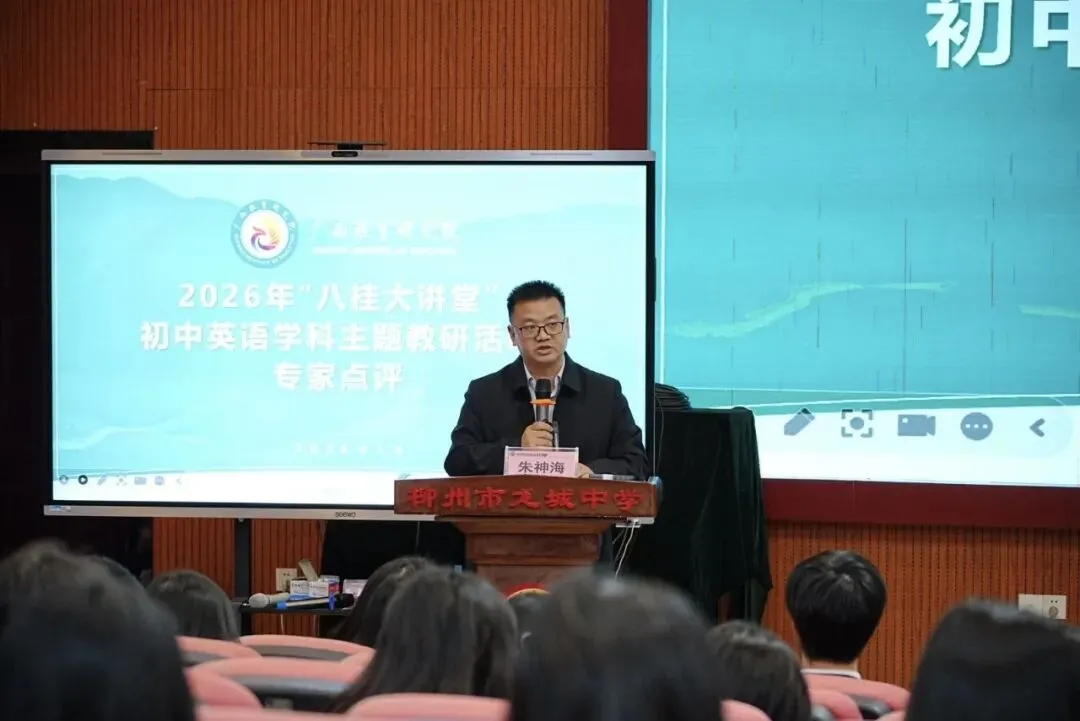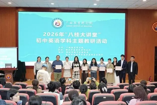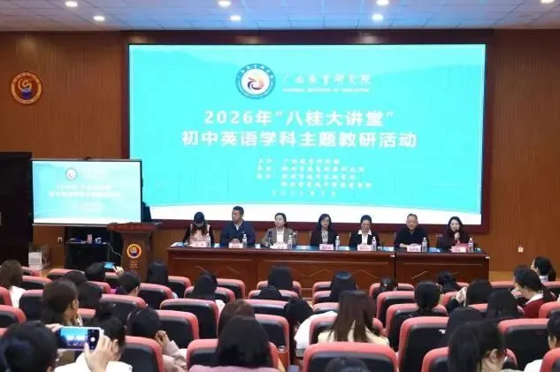 2026年3月17日-18日“八桂大讲堂”初中英语教研活动在柳州市龙城中学举行。活动由广西教育研究院主办,柳州市教育科学研究所、柳州市城中区教育局教研室、柳州市龙城中学协办,以“数智技术赋能下的‘教-学-评’一体化”为核心主题,聚焦新课标理念与课堂实践,汇聚全区英语教育同仁共研教学、共话成长,助力八桂英语教育高质量发展。