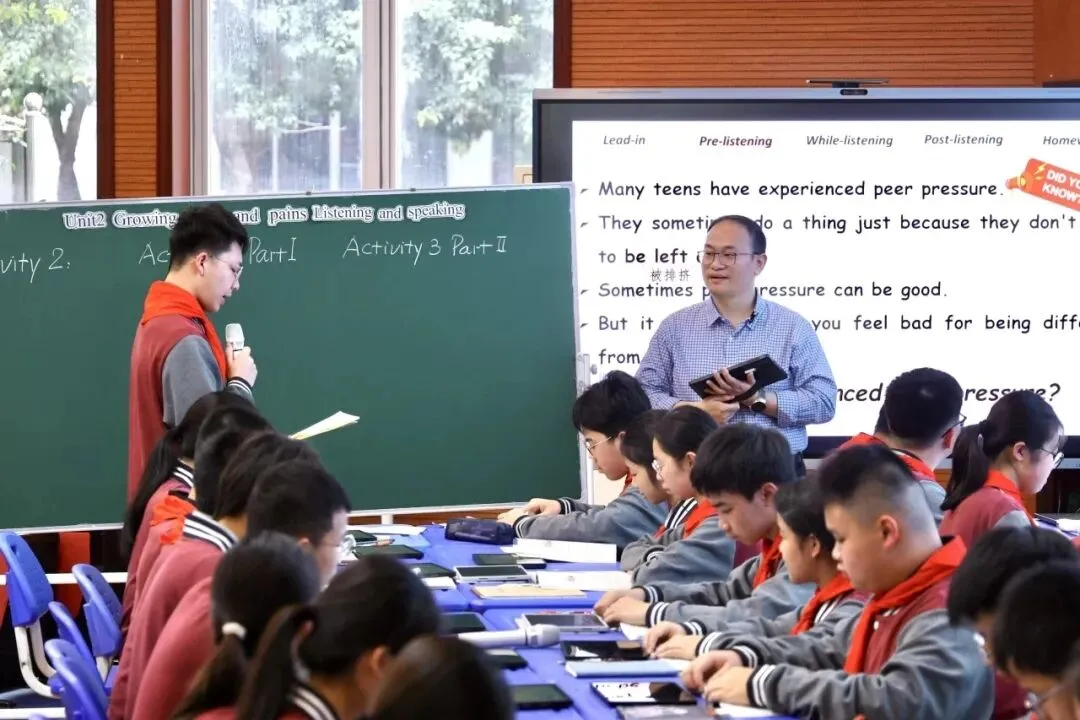 本次活动,柳州市龙城中学各授课班级学生自信登场、亮眼出彩。同学们借助 AI 智能工具大胆表达、合作探究,用流利的英语分享观点,尽显文化自信与青春朝气。龙中学子在数智课堂上积极表达,充分展现了扎实的英语素养与良好精神风貌,赢得现场专家与教师一致好评。