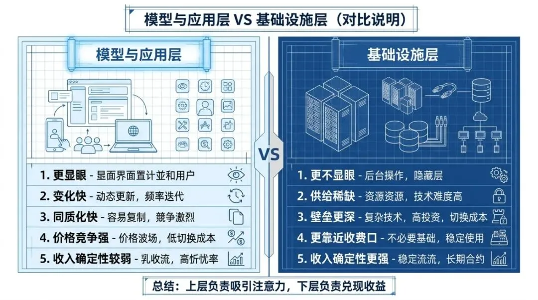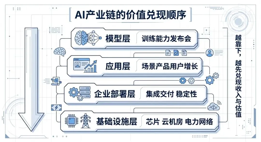 这就是为什么 AI 热潮里,真正最容易先形成确定性收入的,通常不是“最炫”的那一层,而是“最不可替代”的那一层。