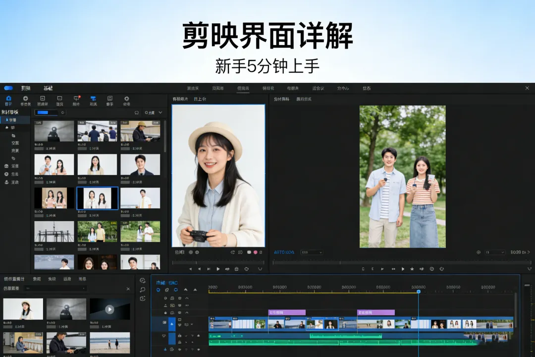 经过前两天的学习,我们已经了解了剪辑的核心概念,也选好了适合新手的剪辑软件,今天就正式进入实操环节!对于零基础新手来说,想要快速上手剪辑,第一步就是熟悉软件的基础界面——无论用手机剪映还是电脑剪映专业版,核心功能区的布局都大同小异,只要掌握了剪映的基础界面,后续的裁剪、拼接、添加字幕等操作都会变得得心应手。今天我们就以手机剪映为例,用5分钟时间,详细拆解每一个核心功能区,让你快速熟悉操作界面,摆脱“打开软件无从下手”的困境。