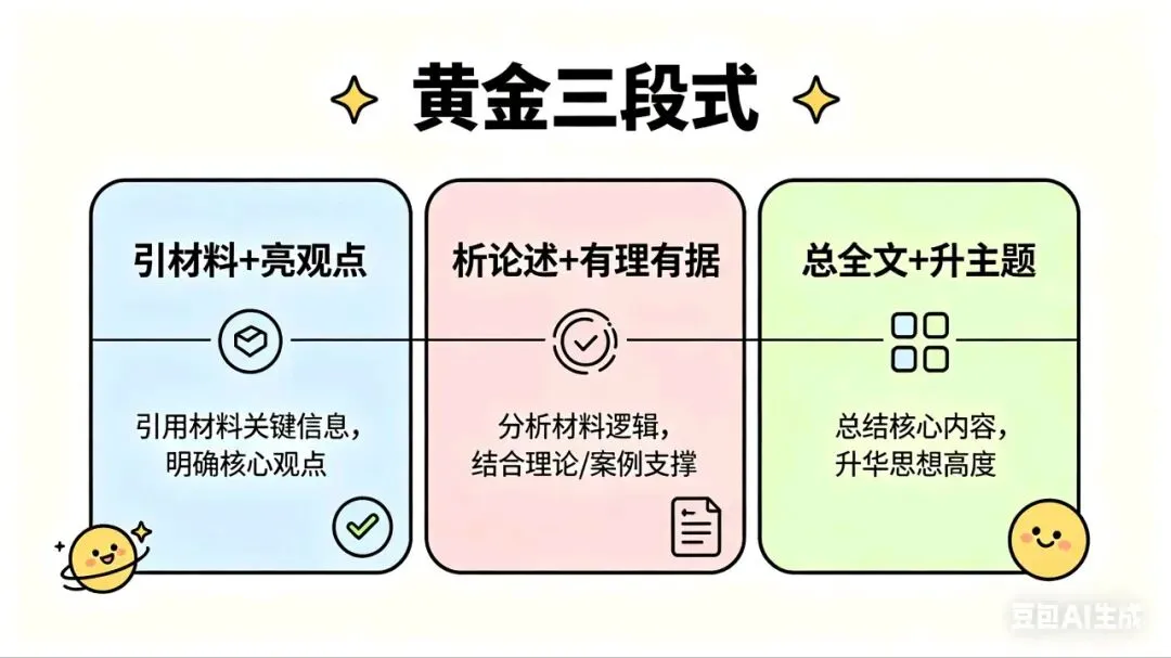 3. 扣材料:所有分析必须围绕题干事件,不脱离话题空谈道理。