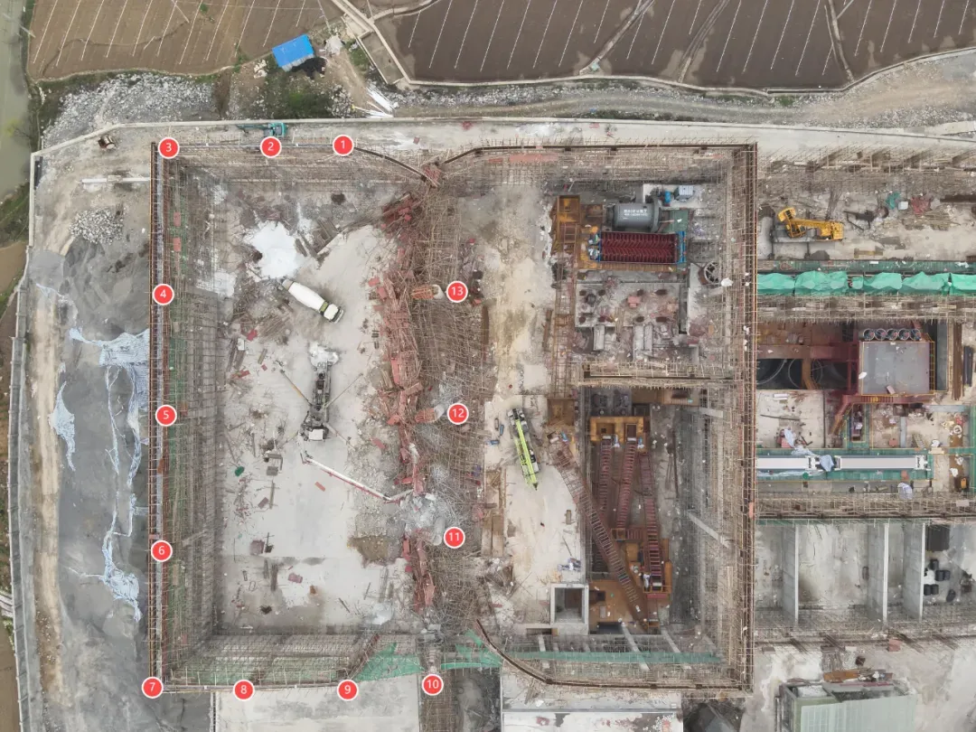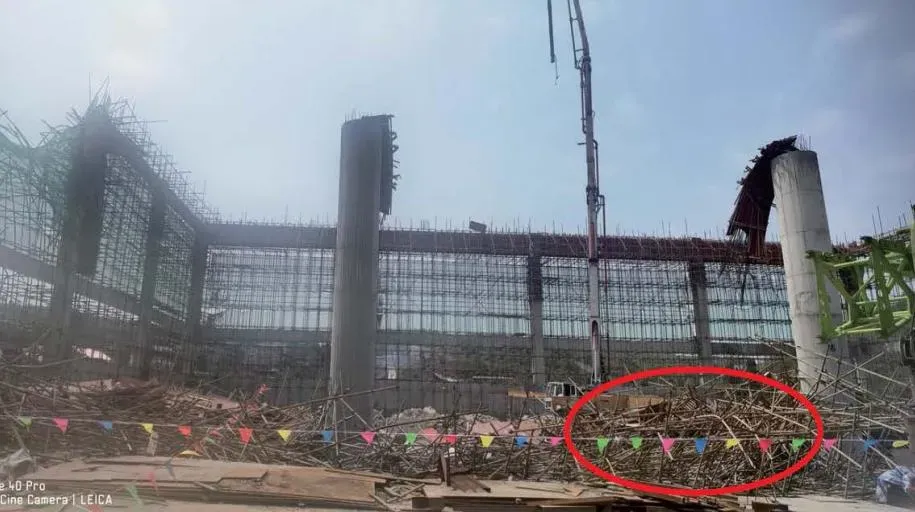 2.工程整体施工进度。事故项目于 2024 年 3 月开始建设,截止事发时,事故项目整体施工进度达 65%左右;项目基础与隐蔽工程已完成、高支模体系搭设已完成、部分大型生产设备已完成基础固定与预装配。事故发生前,主要施工内容是对厂房外围立柱、框架梁、内立柱进行混凝土浇筑作业。