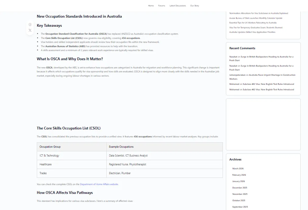 2026年最大的结构变化是:CSOL(核心技能职业清单)已全面取代旧的多层清单体系,涵盖456个职业,适用于482 SID签证核心技能类别以及186雇主担保DE通道。